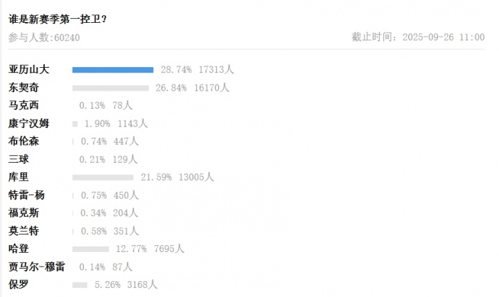 『吧友评选』NBA新赛季第一控卫:谢伊-亚历山大!